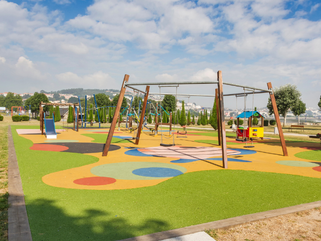 The versatility of synthetic grass makes it suitable for both small backyard playsets and large community playgrounds.